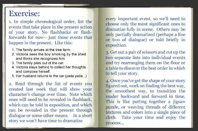 ***This post is the sixth in a series of eight weekly exercises designed to take our short stories from rough draft to finished "masterpiece"(or as close as we can get ;-) with the help of the late John Gardner and a host of other well-known authors and teachers. Click here for Part I ***